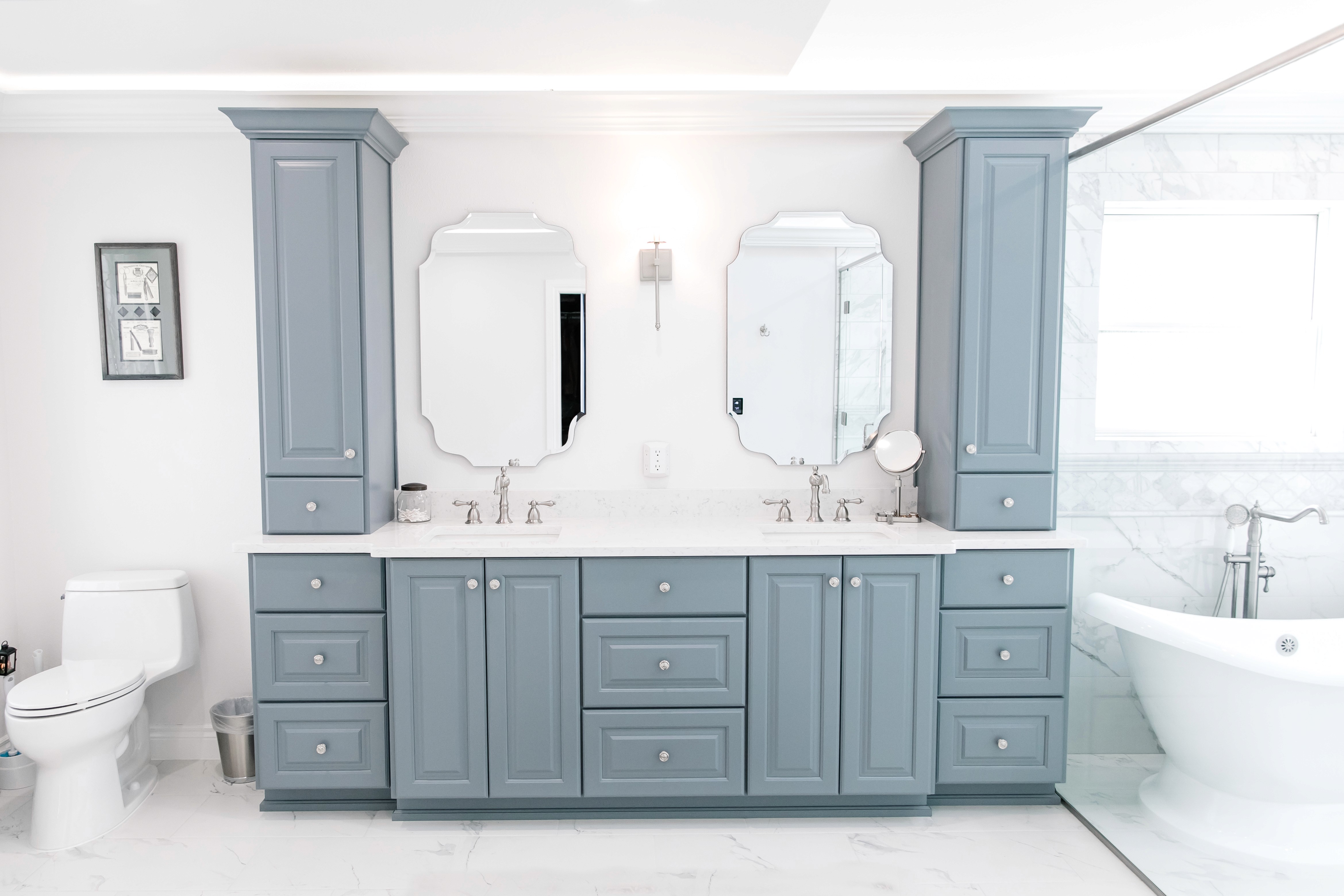 A bathroom remodel allows you to address both practical needs — like improving storage, optimizing layout, or updating plumbing fixtures — and aesthetic goals, creating a space that feels fresh and inviting. From walk-in showers and freestanding tubs to custom vanities, elegant tilework, heated floors, and layered lighting, there are so many ways to tailor your bathroom to fit your lifestyle. Even small updates, such as modern faucets, statement mirrors, or updated cabinetry, can dramatically elevate the room’s look and usability. Remodels also provide the opportunity to make bathrooms more accessible, with features like curb-less showers, grab bars, wider doorways, and adjustable-height vanities to provide comfort and safety. Whether you’re looking to create a luxurious master bathroom, a functional family bathroom, a stylish guest bath, or an accessible space for anyone in your household, we will work alongside you to create a bathroom that is both beautiful and perfectly suited to your unique needs.